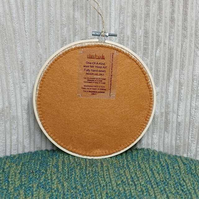 Farmyard Range, hoop art. Donkey design. Made with wool felt, hand-sewn onto hessian Wall art.